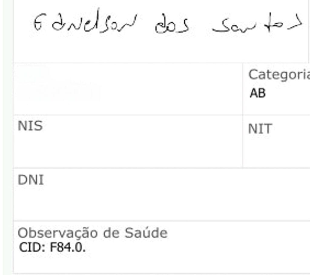 deficiência à luz da legislação brasileira por apresentar a seguinte condição: Transtorno